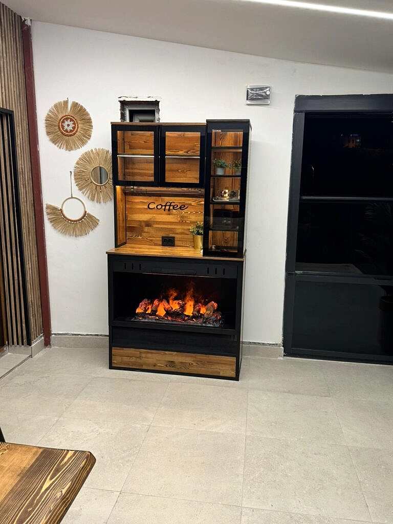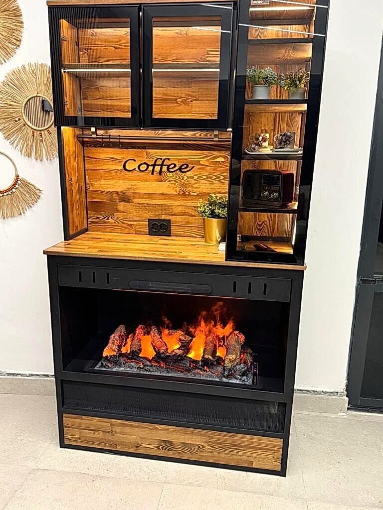 Premium yaşam alanlarına özel üretilen şömineli kahve dolabı, hem sıcaklığıyla hem de estetiğiyle fark yaratıyor.